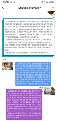 疫情无情,人有情,大家在学习中有了更多的思考和成长。有的同学感慨说:“明明是教师,却都熬成了主播。”员工在家听课不容易,但是老师背后的努力工作更是不易。尽管同学们对在家上网课的看法不尽相同,但大家都非常尊重那些在屏幕背后、为传道授业、答疑解惑的任课老师们。