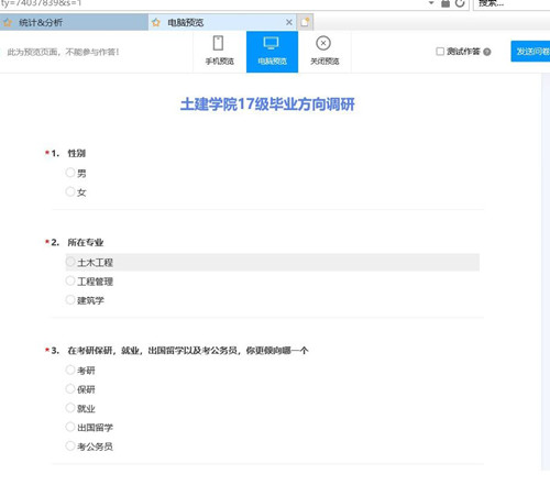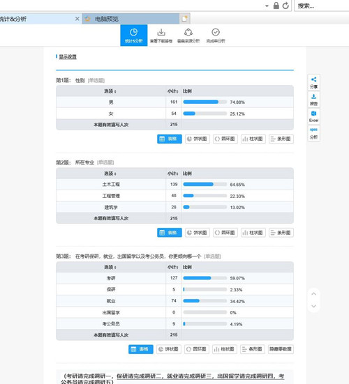 为帮助大三员工进一步明确未来规划,4月25日,bat365在线平台官方网站关工委、团委、员工会通过网络平台开展毕业选择调研,调研面向全体2017级本科生共215人,涉及土木工程、工程管理、建筑学三个专业,调研内容包括毕业后的方向选择,以及对考研、就业等具体内容的了解程度。