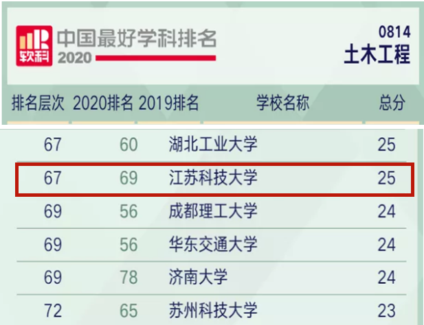 软科中国最好学科排名的指标体系包括人才培养、科研项目、成果获奖、学术论文、高端人才五个指标类别,下设16个指标维度,共计50余项反映学科竞争力的客观量化指标。排名数据全部来自权威第三方,如教育部、科技部、国家自然科学基金委员会、国际和国内文献数据库等。全校共有6个学科上榜,土木工程学科也是其中之一。