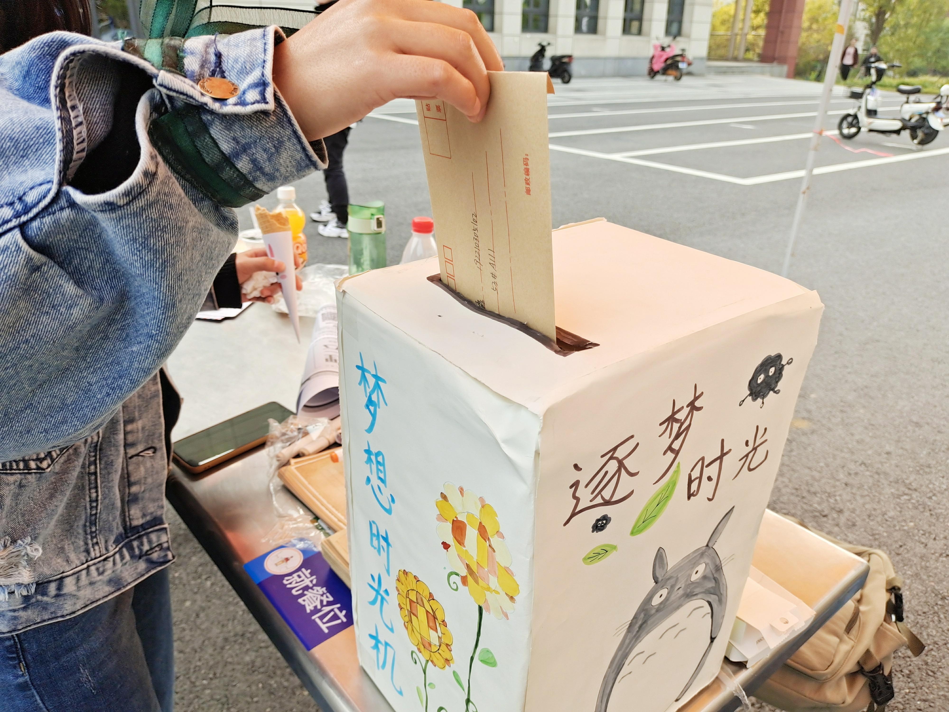 上午8时30分,西苑食堂门口迎来了筑梦服务社的志愿者们,他们将摊位搭建好,摆放好信封,信纸,笔以及信箱,怀着期盼的心情等待着同学们的到来。每一位参与活动的同学都将在信纸上写下自己对未来一年的或期望,或回忆然后投入梦想时光机中,由筑梦服务社的志愿者们在一年后重新交回到每一位参与的同学的手中。重温过去的时光,看看那时的你是否还记得当初的自己是怎样的。在整个活动举办的过程中,前来参加的同学络绎不绝,每一位同学都对未来一年充满了期待。一位大三的同学在参与活动时,特意嘱咐志愿者们,希望自己能够在大四毕业时收到自己的信。“我们希望通过这样的活动来使同学们对大学有一个更加清晰的规划,不只是学习上的,也有生活上的,希望每一位同学都能朝着自己理想的目标奋斗”。据悉,梦想时光机是筑梦服务社的传统活动之一,每一年都会举办。