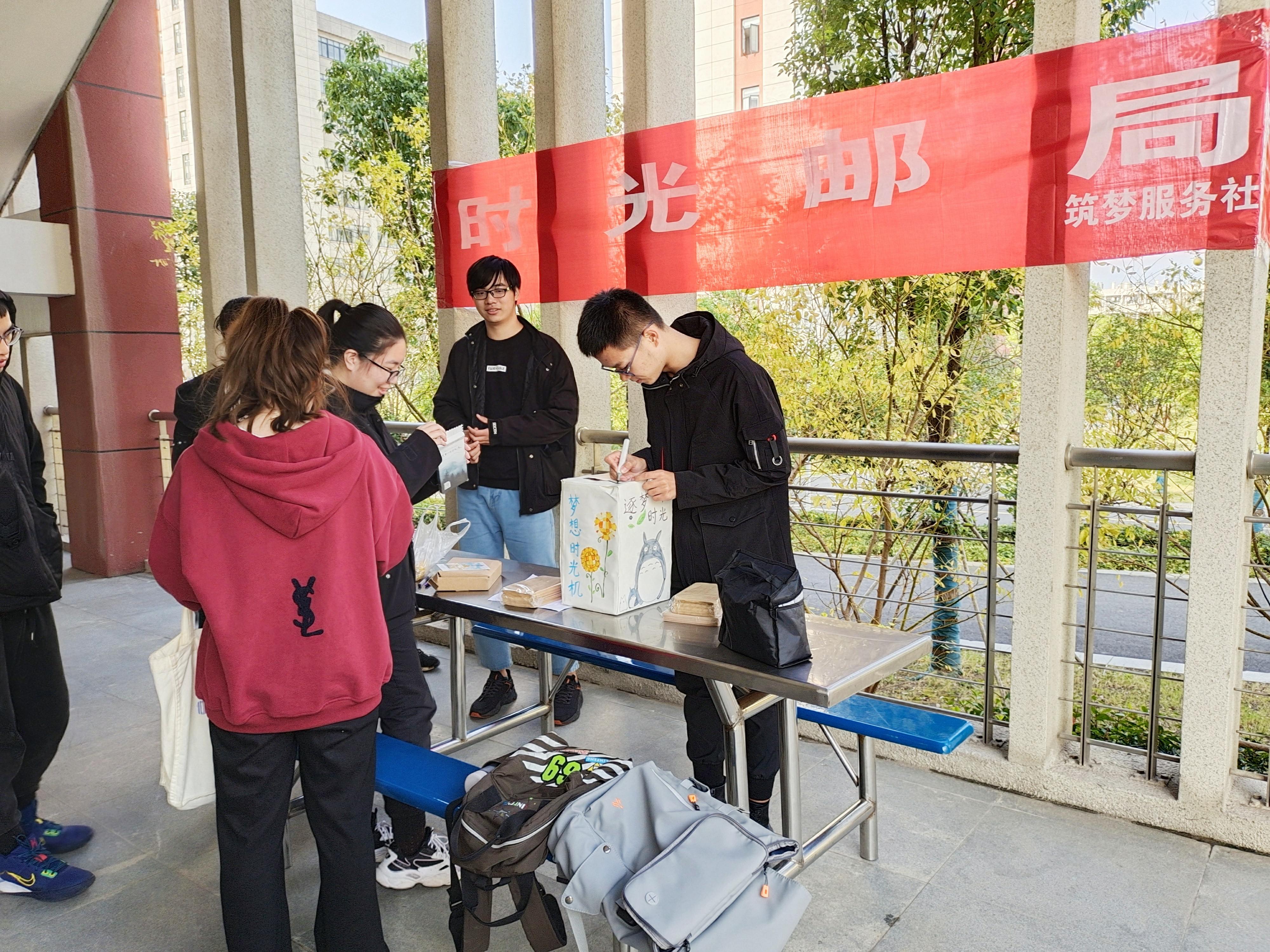 10月23日,bat365在线平台官方网站筑梦服务社在西苑食堂门口举办了“时光邮局”的活动。此次活动的目的是希望同学们带着对未来一年的期许,更加积极的度过老员工活。