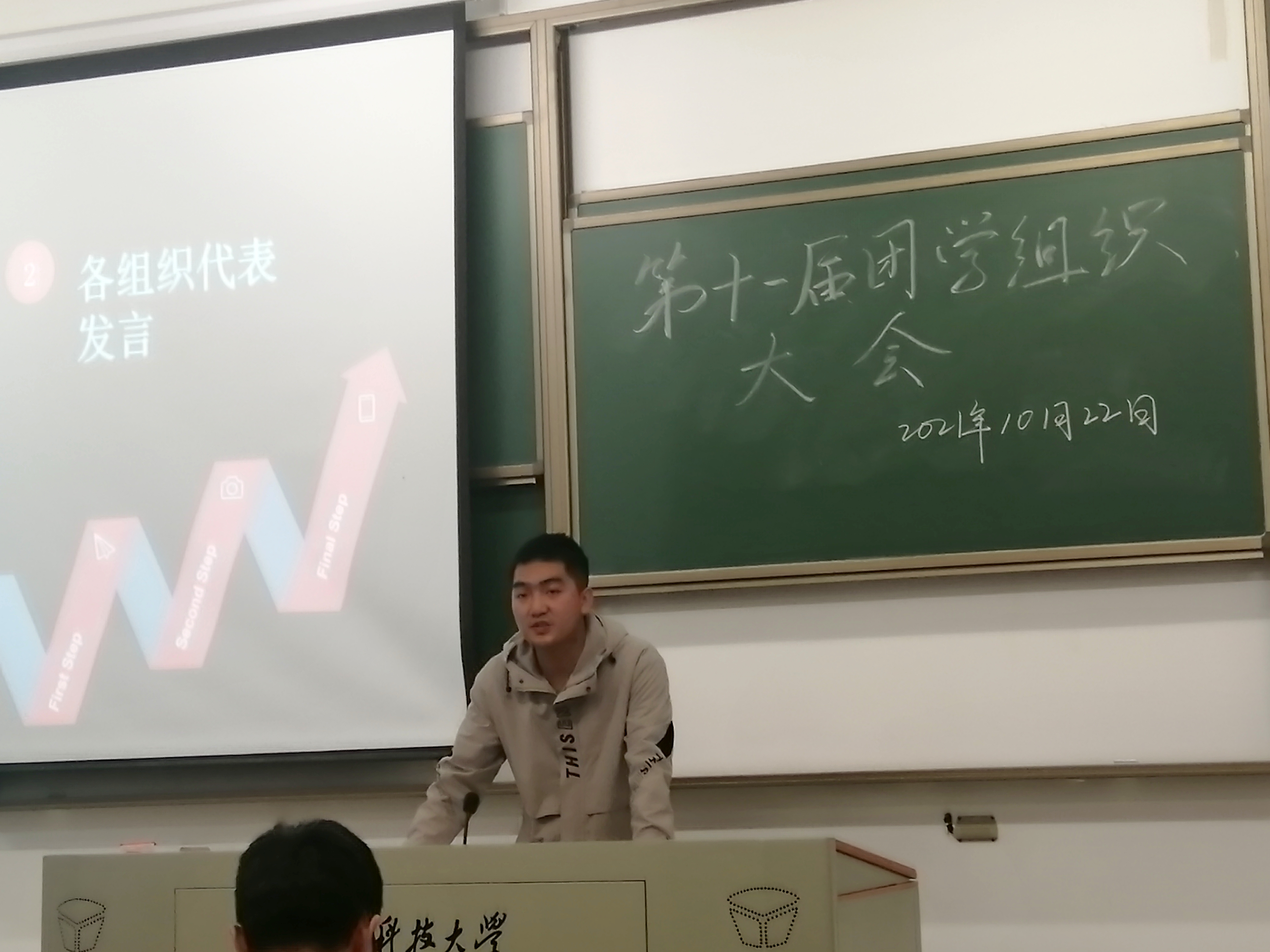 据悉,本次大会共有4大事项。首先,各与会成员进行了自我介绍,以便各成员之间相互认识。接着,各团学组织代表依次上前发言。首先,员工会代表就干事行动进行了发言。她强调要培养有能力有目标的干事,并且侧重说明了需要遵守规章制度;其次,团委代表认为一名团学组织成员要积极服务同学,作为一个集体也需要有凝聚力,能把握当下;接着社联代表发言,鼓励大家在不影响自身生活的情况下积极参加竞赛,本创等活动;之后,筑梦代表简单介绍了志愿者组织,并强调了服务的重要性;最后,星火义工站代表上前简单介绍了义工站的工作,站内要有组织有纪律,追求上进。