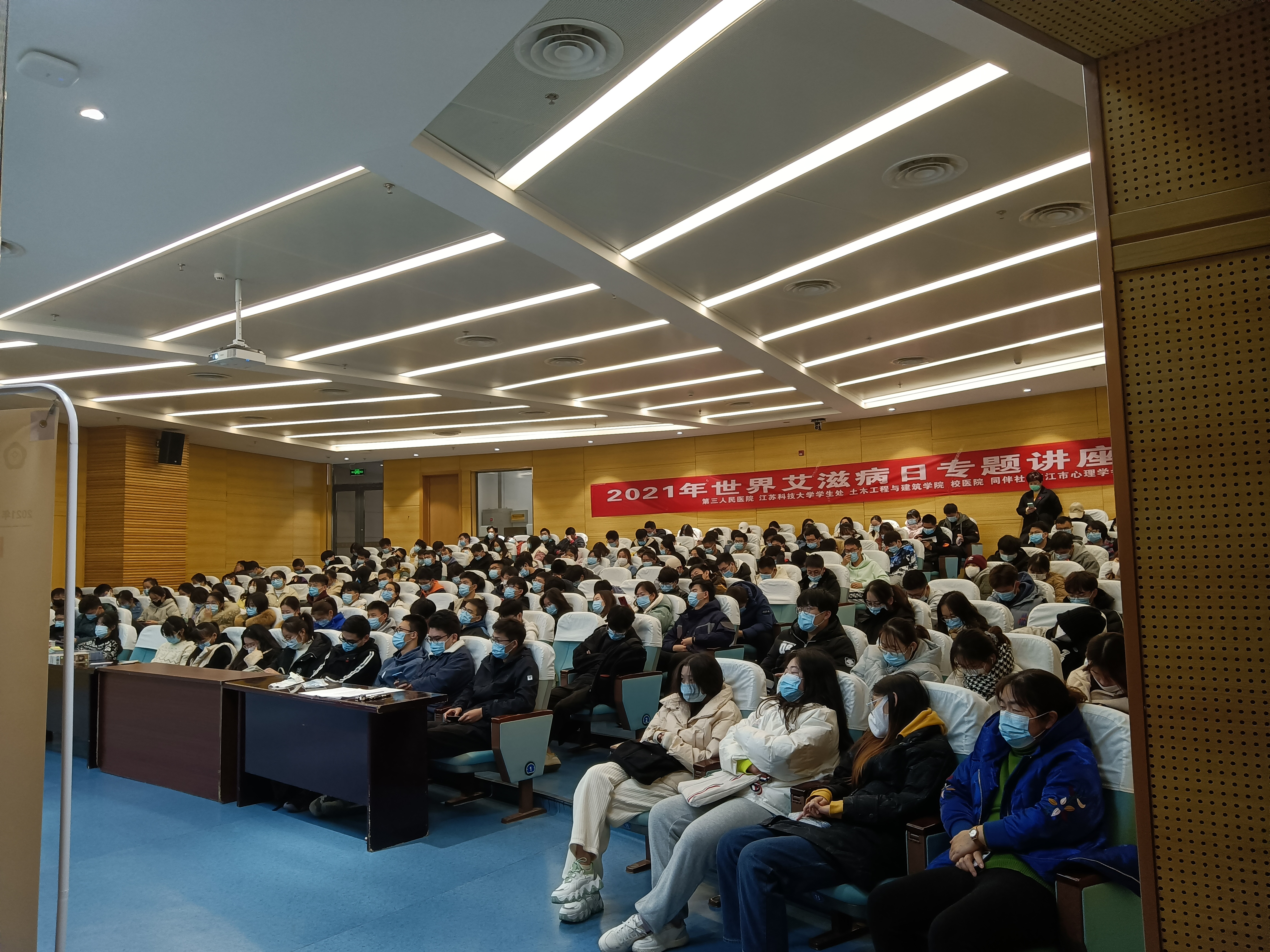 2021年11月30日下午,世界艾滋病日来临之际,为加强同学们艾滋病防治意识,第三人民医院,bat365官方登录中文员工处,bat365在线平台官方网站,校医院,同伴社,镇江市心理学会,于长山校区图书馆B101报告厅联合举办了世界艾滋病日专题讲座。