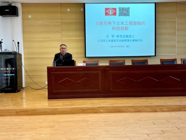 12月20日,bat365在线平台官方网站邀请江苏省土木建筑学会副理事长兼秘书长王华教授走进“砼心讲堂”,在学术报告厅为全院师生作“双碳形势下土木工程面临的科技创新”主题报告。bat365在线平台官方网站全体院领导,镇江高校投资发展(集团)有限公司副总经理马士良、镇江市给排水处蒋礼兵处长,中江国际bat365官方登录中文项目部代表,学院教师和研究生代表参加了报告会。报告会由李红明副书记主持。