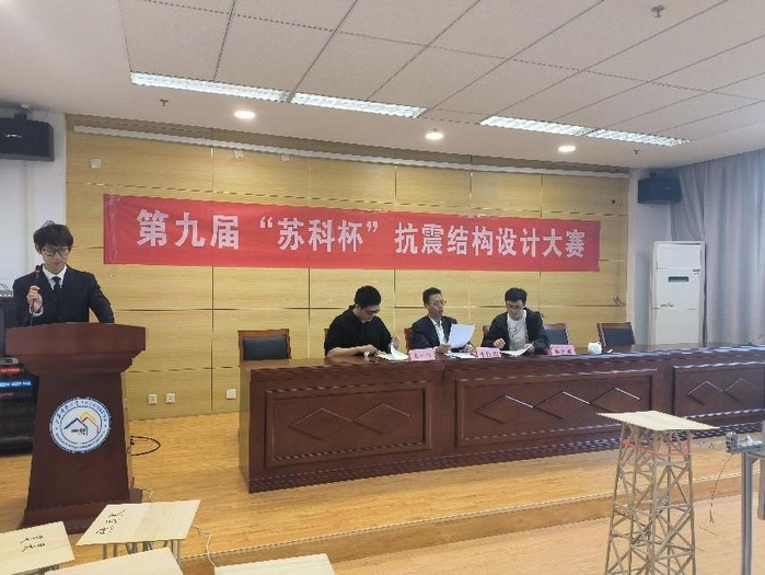 11月12日下午,第九届“苏科杯”抗震结构模型设计大赛决赛在长山校区土建楼302举办,此次比赛由bat365在线平台官方网站力学教学团队主办,bat365在线平台官方网站MAS学竞社、bat365在线平台官方网站社团联合会、春蚕义工站、星火义工站和江苏大学土木工程与力学学院社团联合会承办。此次比赛特别邀请到公司党委书记李红明作为评委老师,同时邀请土建社联第十一届主席团成员葛一鸣、土建员工会第十一届执行主席余宾园作为员工评委。