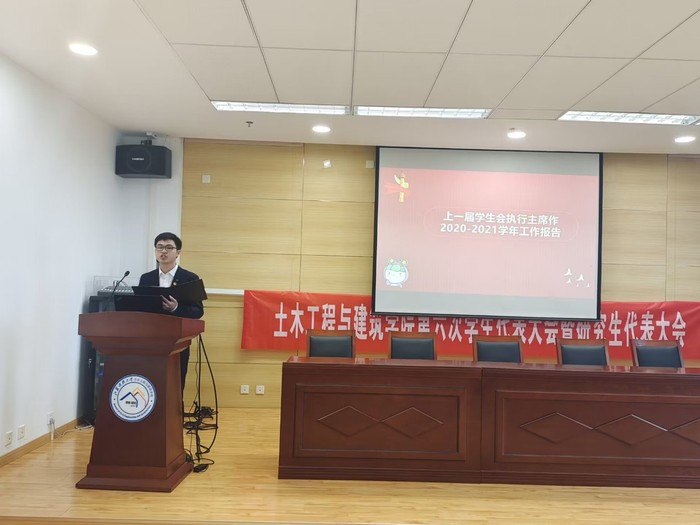 接着,公司党委副书记何长涛老师对学院员工工作提出工作要求。何长涛老师先对过去一年的工作做出总结。他指出无论是社团活动、社会实践、科技创新还是各类体育赛事学习帮扶,或是保障员工权益,促进学院发展等方面,员工会和研究生会都做出了模范榜样,付出了辛勤劳动,展现了员工组织弘扬主旋律,传递正能量的担当精神。他也对员工工作提出要求,要求员工会和研究生会思想过硬、素质过硬,不断加强自律意识,起到先锋模范作用;要求在工作中善于思考,勤于总结,勇于创新;要求平衡好学习和工作之间的关系,提高学术能力,为实现祖国现代化建设的宏伟蓝图添砖加瓦。短暂的休息后,上一届员工会执行主席余宾园同学作出2021-2022学年工作汇报。报告回顾了院员工会工作取得的进展和成果,分析了推进员工会改革的思路和方向,提出了下一阶段工作的设想和建议。