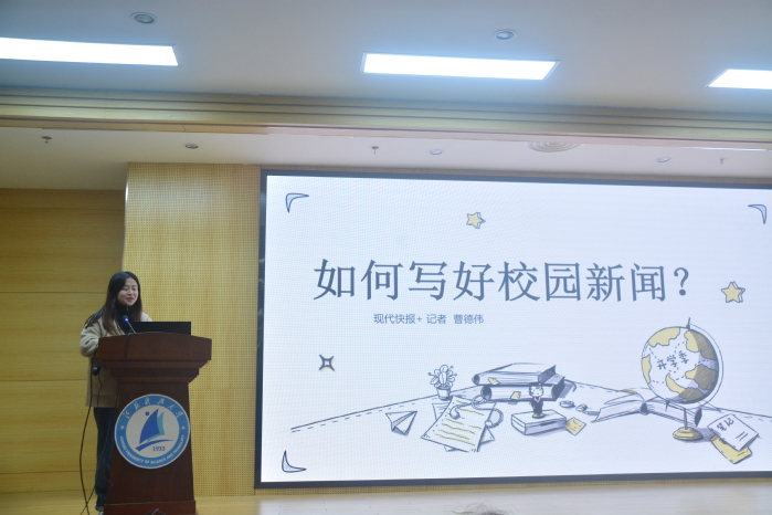 为全面培养同学们的写作能力、社会观察能力和文化科学知识,锻炼同学们对阅读新闻、新闻写作的兴趣,bat365在线平台官方网站邀请“现代快报”记者曹德伟于3月21日晚开展“如何写好校园新闻稿”专题讲座,bat365在线平台官方网站全体员工骨干积极参加此次活动。