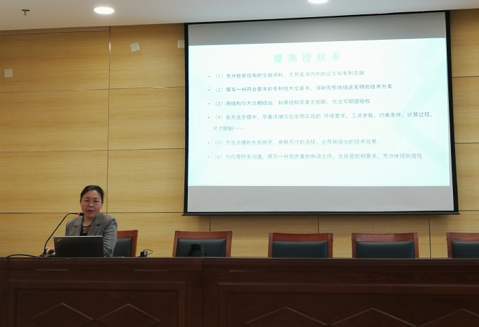 周主任首先致辞,对殷春雷代理师的到来表示热烈的欢迎。随后,殷春雷代理师介绍了发明专利的特点和授予专利权的实质性条件,详细介绍了专利申请技术交底材料的撰写要求和常见问题,专利审查回复文件的思路和方法,最后介绍了高价值发明专利的特点和土木类高价值发明专利实例。