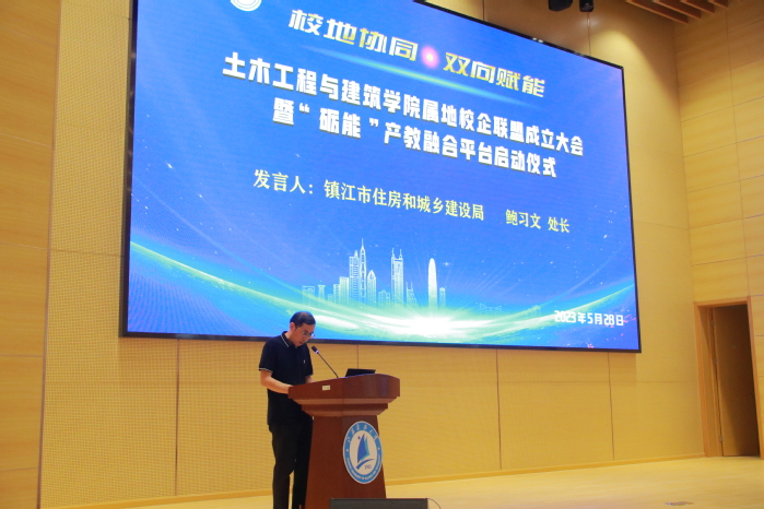 鲍习文处长在讲话中强调,“校企联盟”是企业的需求,更是员工的期盼,作为建筑行业主管部门,将一如既往地支持bat365在线平台官方网站和建筑行业发展,支持并参与“校企联盟”有关活动。鲍处长表示,作为行业主管部门,将引导、支持和打造“政产学研用”一体化发展模式,为镇江市“产业强市”一号战略的顺利实施做出土建人的贡献。