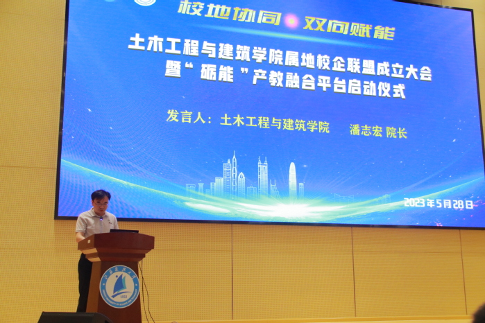 5月28日下午,bat365在线平台官方网站与镇江市土木工程领域相关企业成立属地校企联盟,共建“砺能”产教融合平台,校地协同,双向赋能。镇江市土木建筑学会理事长强南山,镇江市住建局建筑市场监管处处长鲍习文,全国劳动模范、党的二十大代表、江苏广兴集团总工沈春雷,镇江市高校投资建设发展(集团)有限公司副总马士良,镇江建筑行业协会副秘书长余署安等单位领导出席活动。镇江市土木工程领域32家企业代表,学院领导班子、师生代表150余人出席活动。活动由公司党委书记李红明主持。