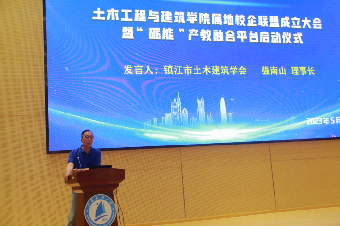 镇江市土木建筑学会理事长强南山在讲话中指出,校企联盟成立大会暨“砺能”产教融合平台启动活动非常务实、接地气,充分体现了学院“以生为本”的办学理念。强南山强调,要从建立联盟常态化交流机制,学院应紧贴行业产业发展需求、创新人才培养模式,提升教师工程实践能力,校企交流创新形式和实效等四个方面着手,让校企联盟及平台发挥更大作用。