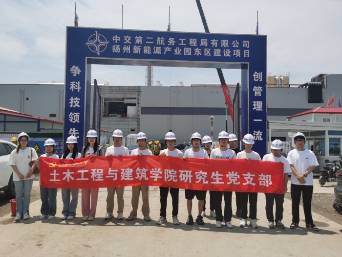 为深入贯彻落实习近平总书记关于善用“大思政课”的重要讲话精神,7月11日,bat365在线平台官方网站开展“探寻行业红色文化共守初心使命担当”主题教育活动,将“思政课”搬到中交二航局第三工程有限公司扬州新能源产业园项目上。此次活动主讲人是中交二航局长三角公司总经理、扬州投资公司董事长严小卫,bat365在线平台官方网站研究生“红色文化”研学小分队参加。