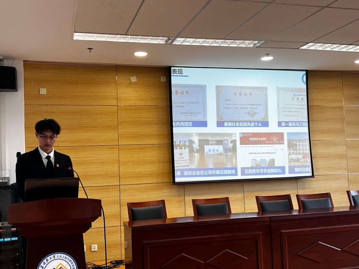 经个人如实申报、学院严格初审,共有7名优秀员工入围现场答辦。7位优秀员工从个人介绍、员工工作、学科竞赛、科研经历以及志愿服务等方面展开,以图文并茂的PPT、流利的表达以及在校期间各方面闪亮的成绩单,精彩地展现了他们学习竞赛等各方面的优秀表现。