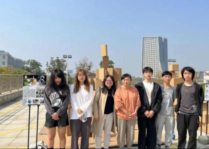 走进长山校区图书馆南门广场,受邀出席的嘉宾看到,一座座用瓦楞纸板搭建而成的小空间映入眼帘,它们设计多元,创意感满满,将校园内原本空旷宁静的广场变成了建筑艺术的殿堂。随后,各专业老师在员工的引导下现场评审作品。员工与指导教师点对点学习,吸取改进经验。