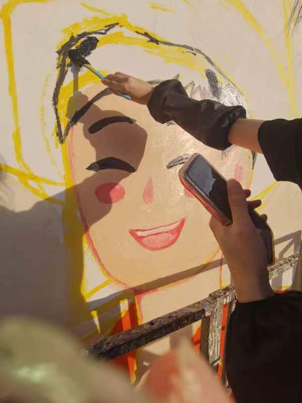 据悉,活动开展前期,在与村支部书记积极沟通交流后,基本确定了墙绘地点(建筑外墙)、墙绘主题(“新农村”和“党建”)以及墙绘风格等基本要点。基于这些方面,同学们构思设计方案的同时进行了成员分组与分工。活动期间,队员们互帮互助,经历了清洁、打底、勾线、上色等关键步骤,使得墙绘逐渐在村户家的墙头展现出一道亮丽的风景,充分体现了浓厚的团队意识和合作精神。在大家的不懈努力下,服务团队如期完成墙绘,得到村民们的一致好评。活动最后,村支部书记代表村民表示了对服务团队辛苦工作的感谢,同学们也交流了对本次活动的收获和感悟,深刻体会了“用奋斗追逐梦想,用爱心温暖他人”真正内涵。