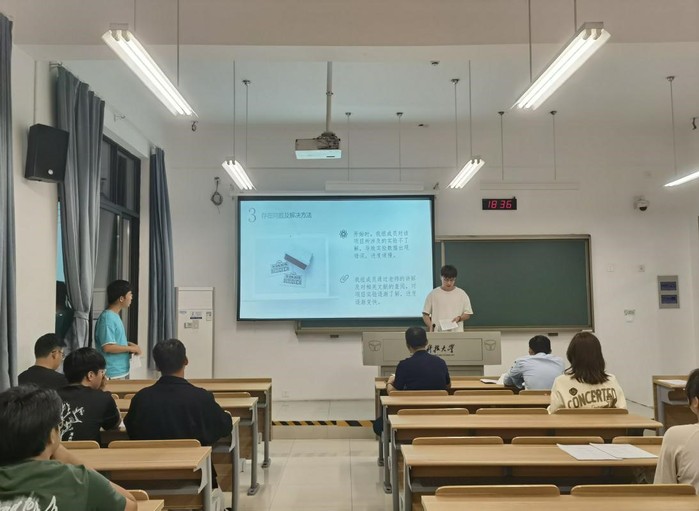 答辩会伊始,由主持人介绍会议进程与注意事项。答辩过程中,汇报人以研究目的、研究进度、研究计划等内容为大纲,通过数据分析、图片展示等方式清晰完整地汇报了项目中期进度并向大家展现了自己小组的成果。交流环节时,面对评审老师的提问,答辩人积极回答,探讨,现场学术氛围热烈。同时,各评审老师对项目组在科研活动中所付出的真切努力也给予了充分肯定。