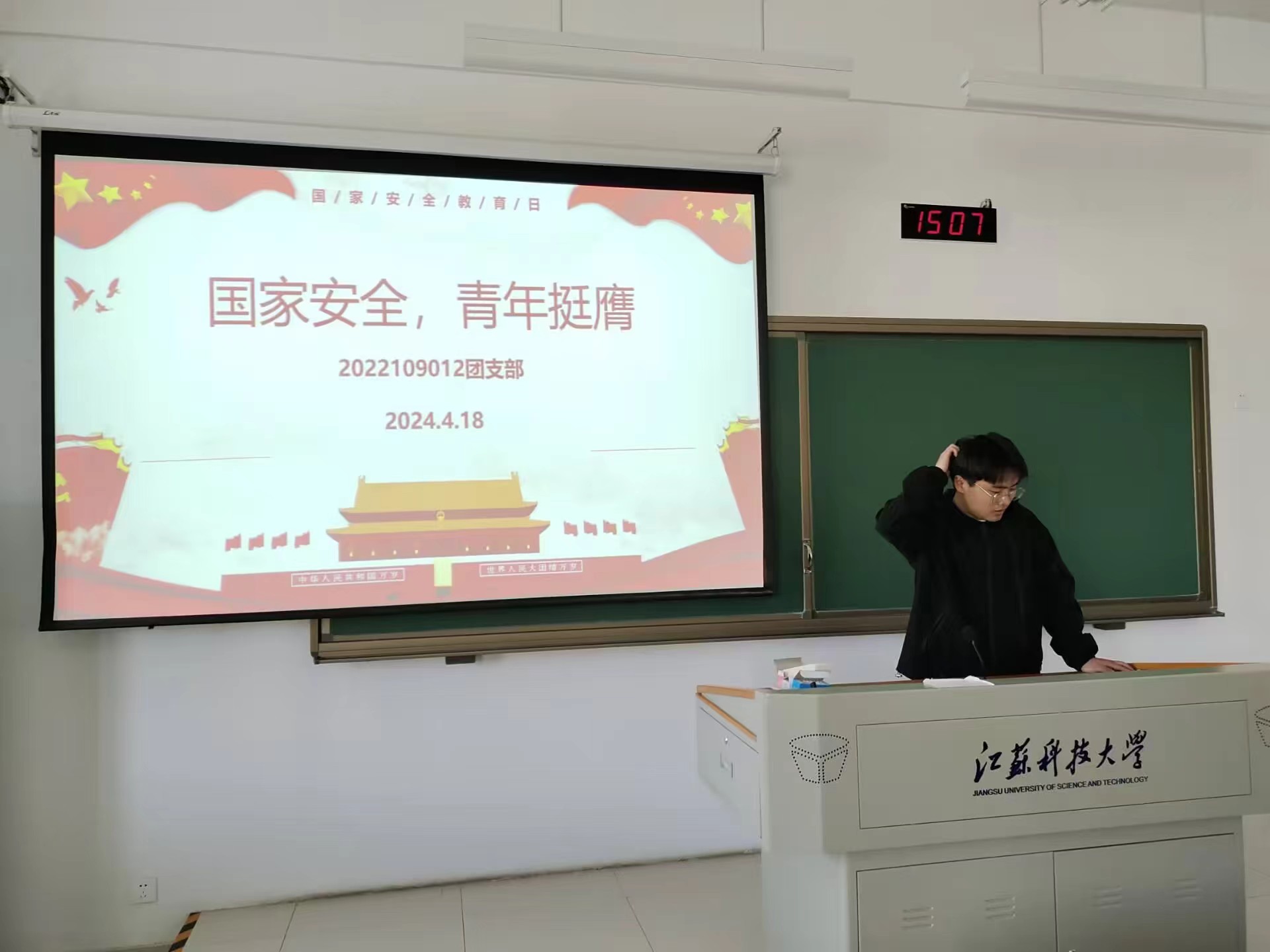 在各班级的主题班会上,土木四班播放了一段国家安全宣传视频并进行知识科普,激起了同学们对国家安全的重视;土木一班采用同学讨论等形式开展宣传、教育、学习。各班级班委们纷纷展开对“全民国家安全教育日”的介绍和有关违反国家安全法律案例的讲解。其中三班班长郭开凯同学上台普及了保密安全知识,强调了保密工作的重要性,提醒同学们要增强保密意识,自觉履行保密义务。