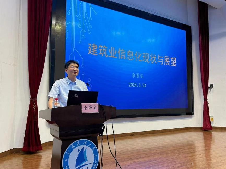 随后,2001届土木工程专业优秀毕业生余暑安员工为同学们讲解了建筑业信息化现状与展望,他从信息技术各行各业的改变、建筑业信息化现状和对未来建筑业的畅想三个方面展开阐述,层层深入,生动具体地描述了现代技术对建筑行业发展的重要性,并带着同学们畅想未来建筑业可能发生的智能化改变。